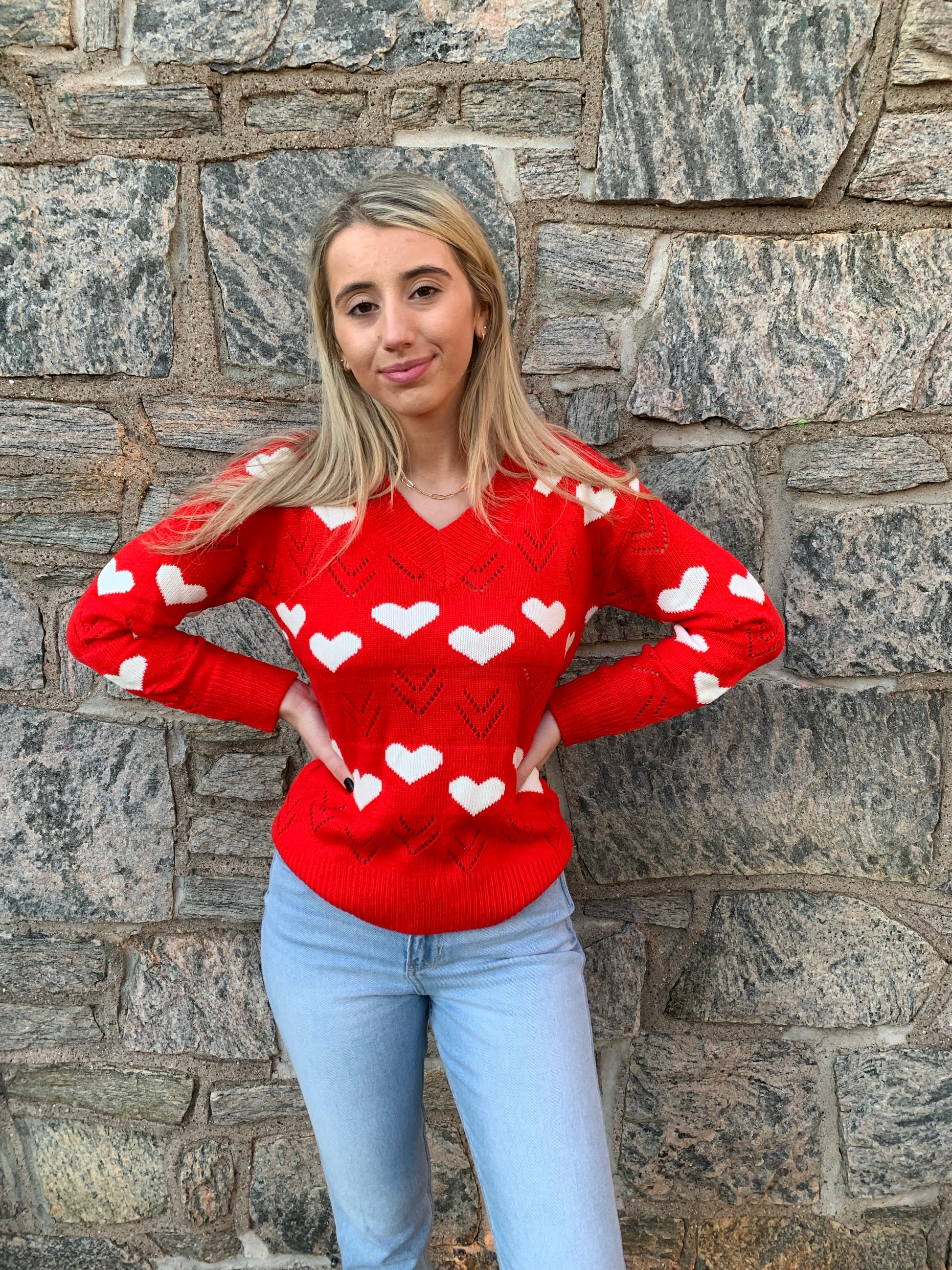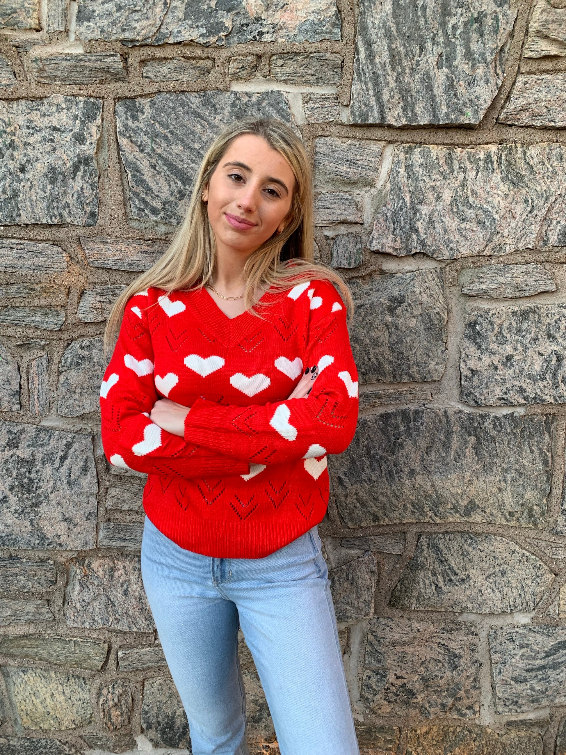 Wear your heart on your sleeve or maybe all over in this cute sweater. Ready for a season of love. This is a great gift for your sweet heart too!